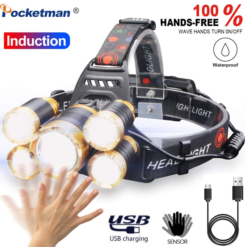 5000Lumens LED Headlight headlamp Body Motion Sensor Head Camping Torch Light Lamp With USB Best For Camping, fishing